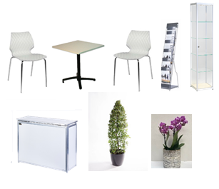 ALL-IN PAKKET, VERHOOGDE VLOER, NAADLOZE PRINT, EYECATHER (ZOALS BIJVOORBEELD EEN TRUSS CONTRUCTIE), MEUBILAIR & PLANTEN